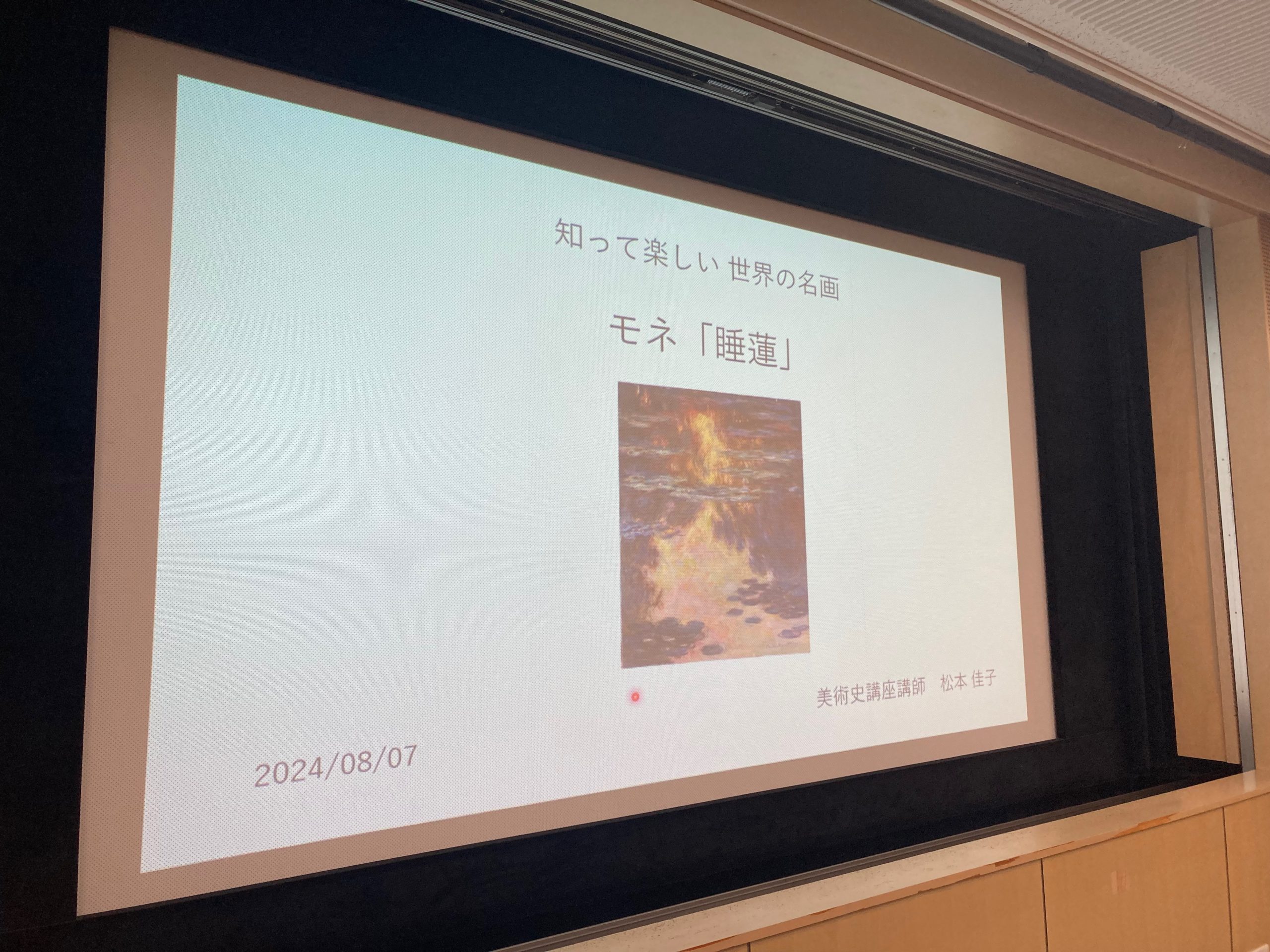 今日はいずみ市民大学教養学部「知って楽しい世界の名画」全10回のうち第7回、「モネ『睡蓮』」の講座のお仕事でした。